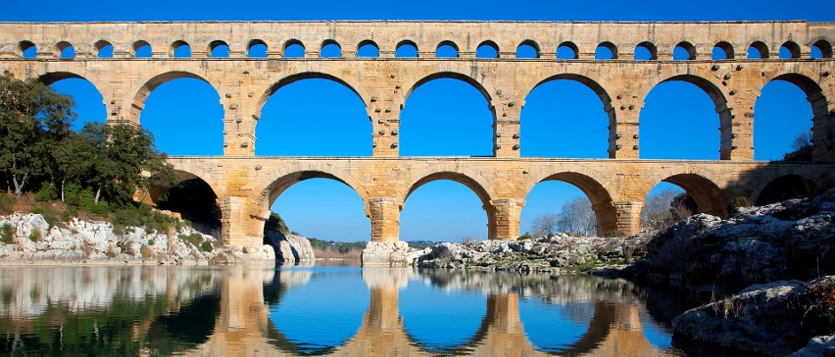 In Roman architecture, their use of pillars and arches is exemplified in their aqueducts, the Colosseum and in temples (Maison Carrée, one of the best preserved Roman temples):